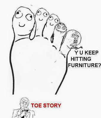 Wordless Wednesday #33 - Toe Story Get link Facebook X Pinterest Email Other Apps By Unknown On June 05, 2013 Get link Facebook X Pinterest Email Other Apps Comments Ahmedfani said… Yup. Kelmarin tersadung kerusi yang sama 6 kali dlm sehari. Unknown said… hehe.. kerap sngt kena :) agent platypus said… anak jari pon dah kematu...hahaaha